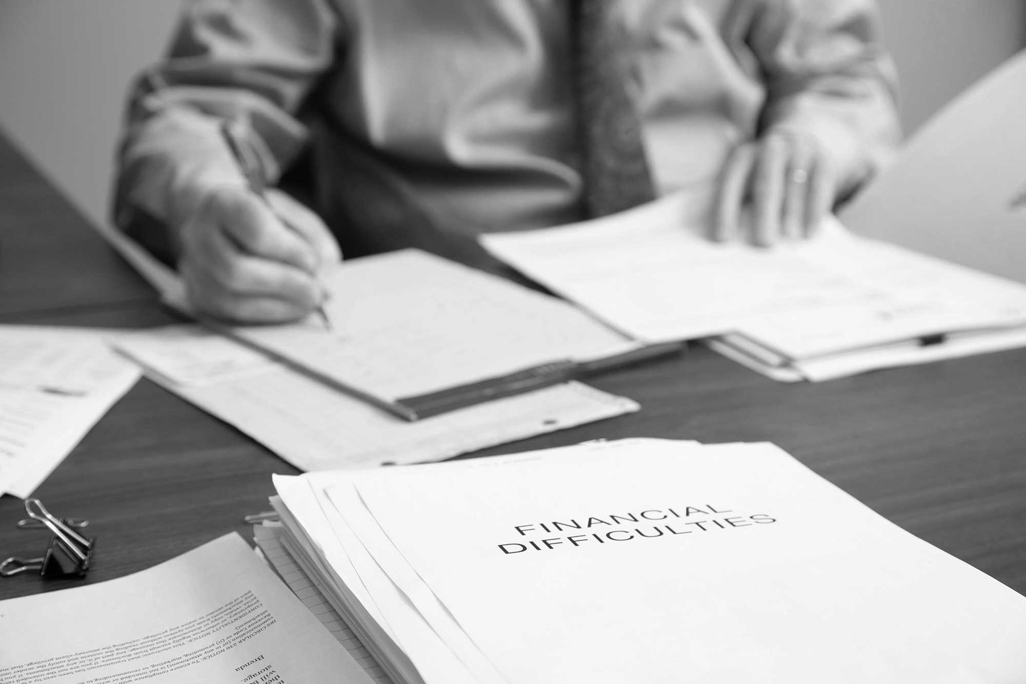 Image of Dave Hillier working at his desk with a stack of files